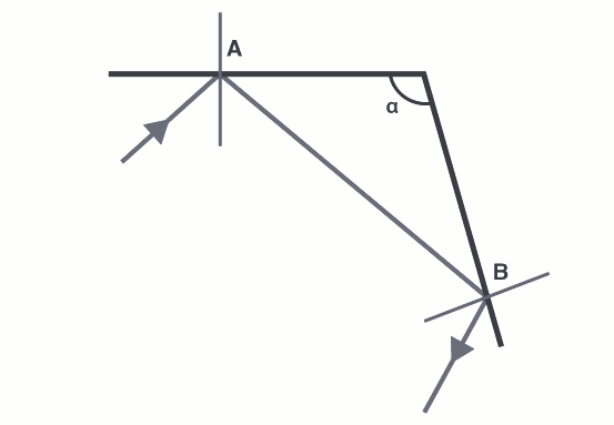 Find angle α made by the system of the two mirrors shown in the figure above so that the incident ray at A and the reflected ray at B are parallel.